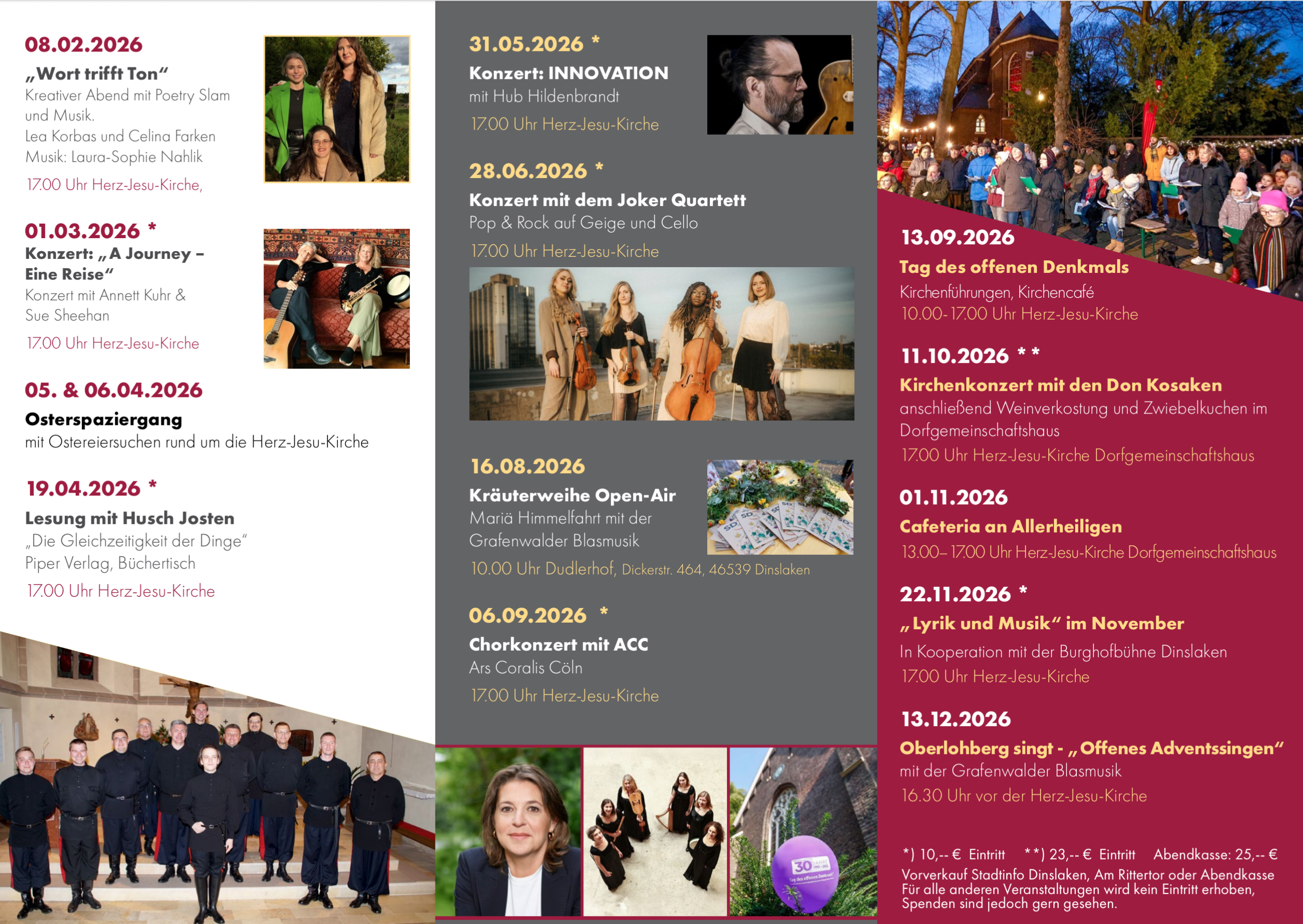 Ab sofort liegt in allen Kirchen und in der Stadtinformation am Rittertor der neue Flyer des Fördervereins Herz-Jesu-Kirche Oberlohberg e.V. mit dem Programm für 2026 zur Mitnahme aus.